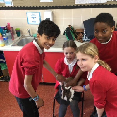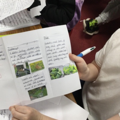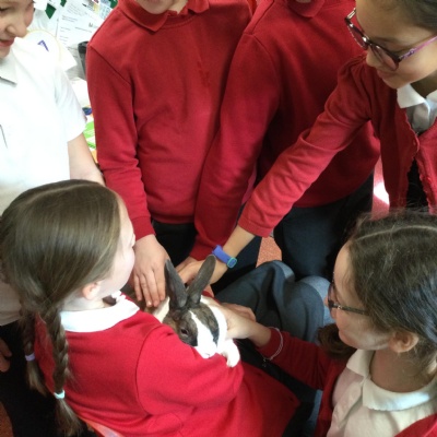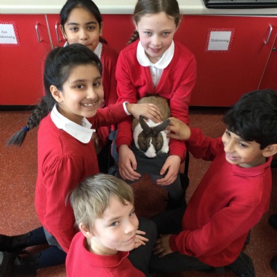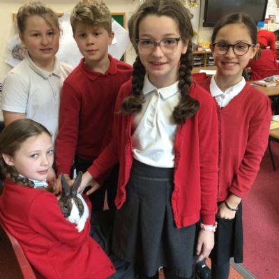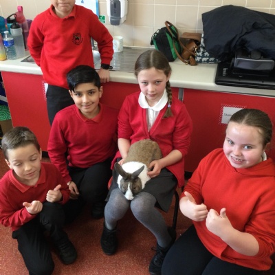 Today we had a very special visitor!! He was incredibly friendly, cuddly and soft and his name is Biscuit! He came to visit Year 4 as we have been researching and creating leaflets about how to take care of a rabbit.