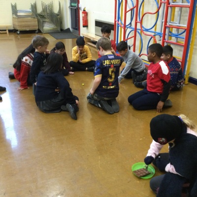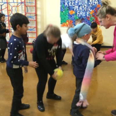 Christmas Party - We played 'Hats and Gloves' to eat the chocolate, 'Tball' wearing winter items, 'Make a Snowman' using a toilet roll and finally 'Pass the Parcel'.