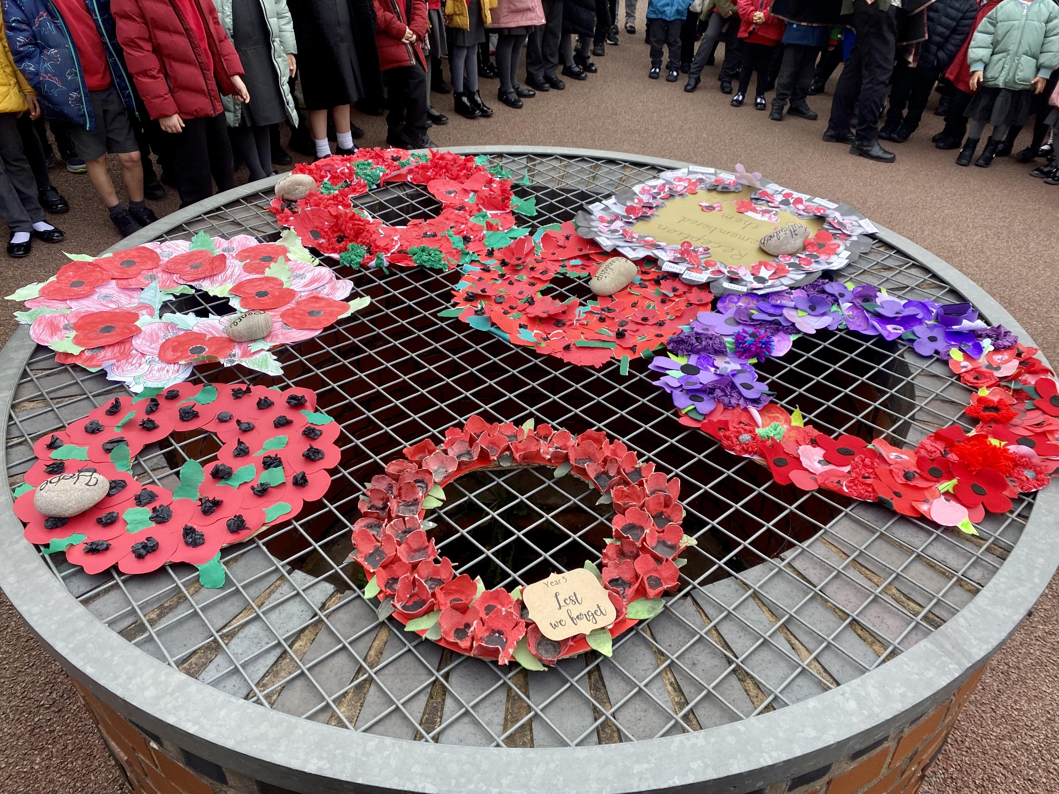 Our finished poppy wreath for Remembrance Day on Friday.