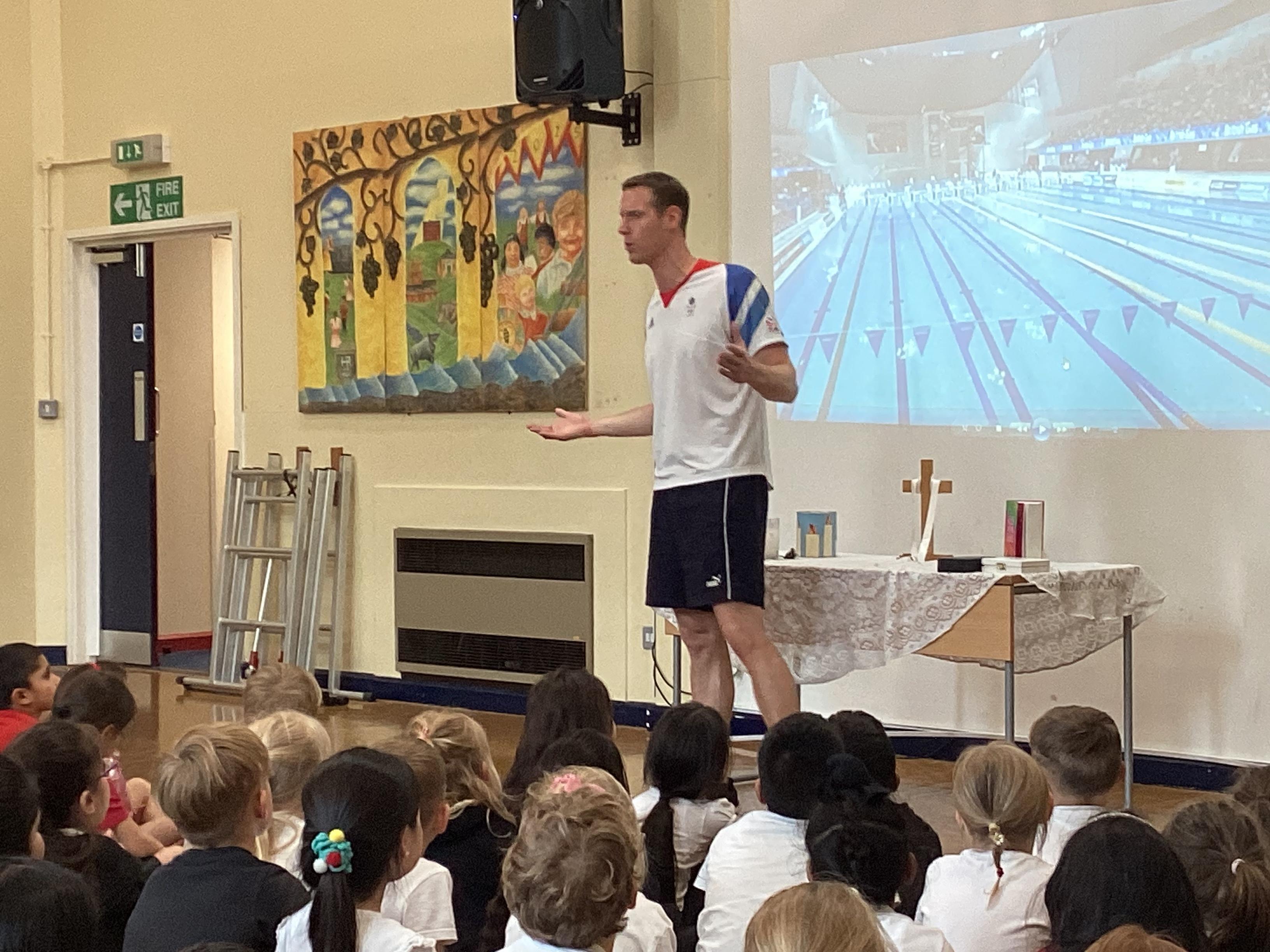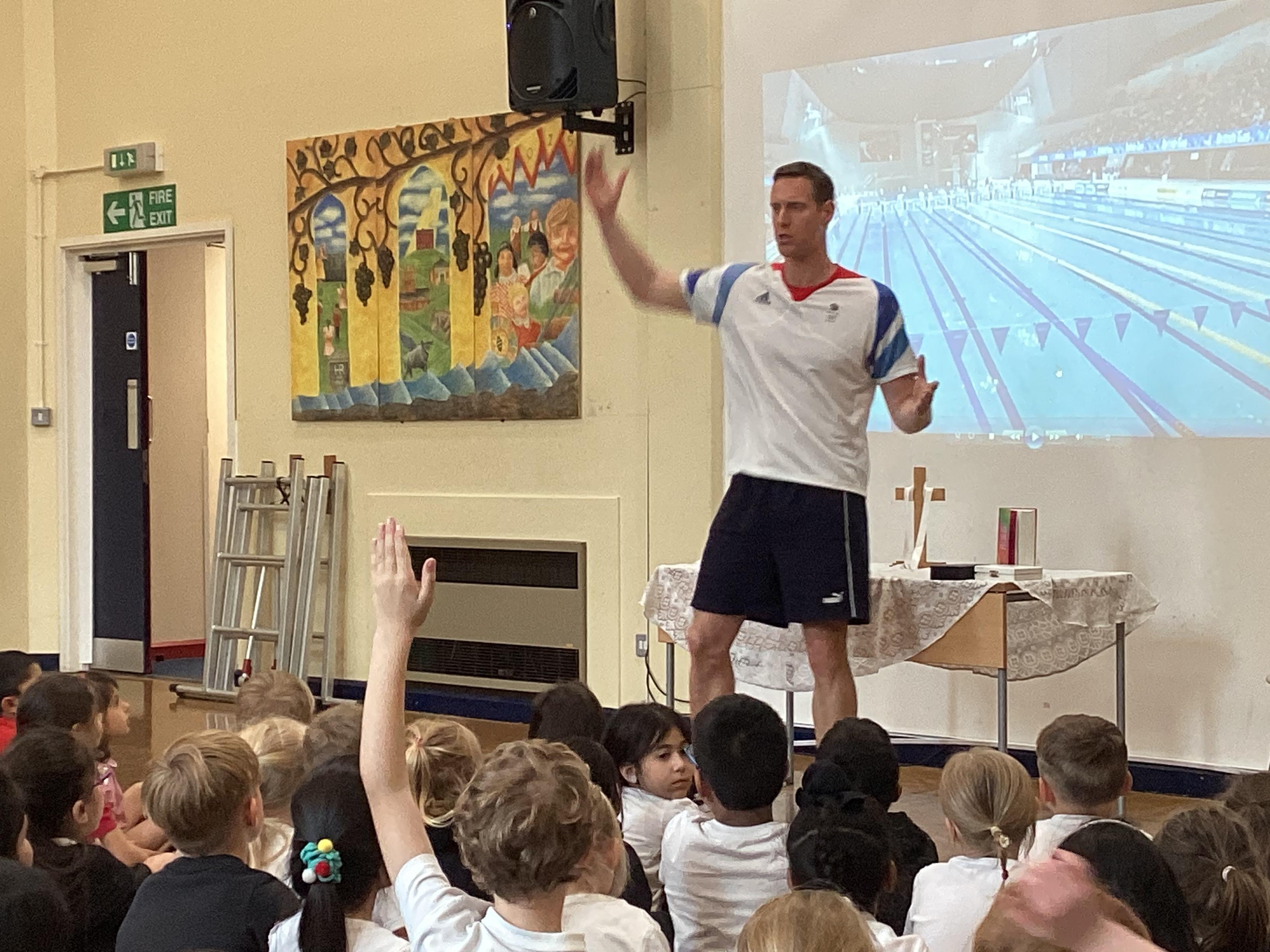 This afternoon we had a special visitor- Joseph Roebuck, an Olympic swimmer. Look at our videos below.