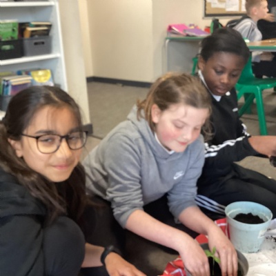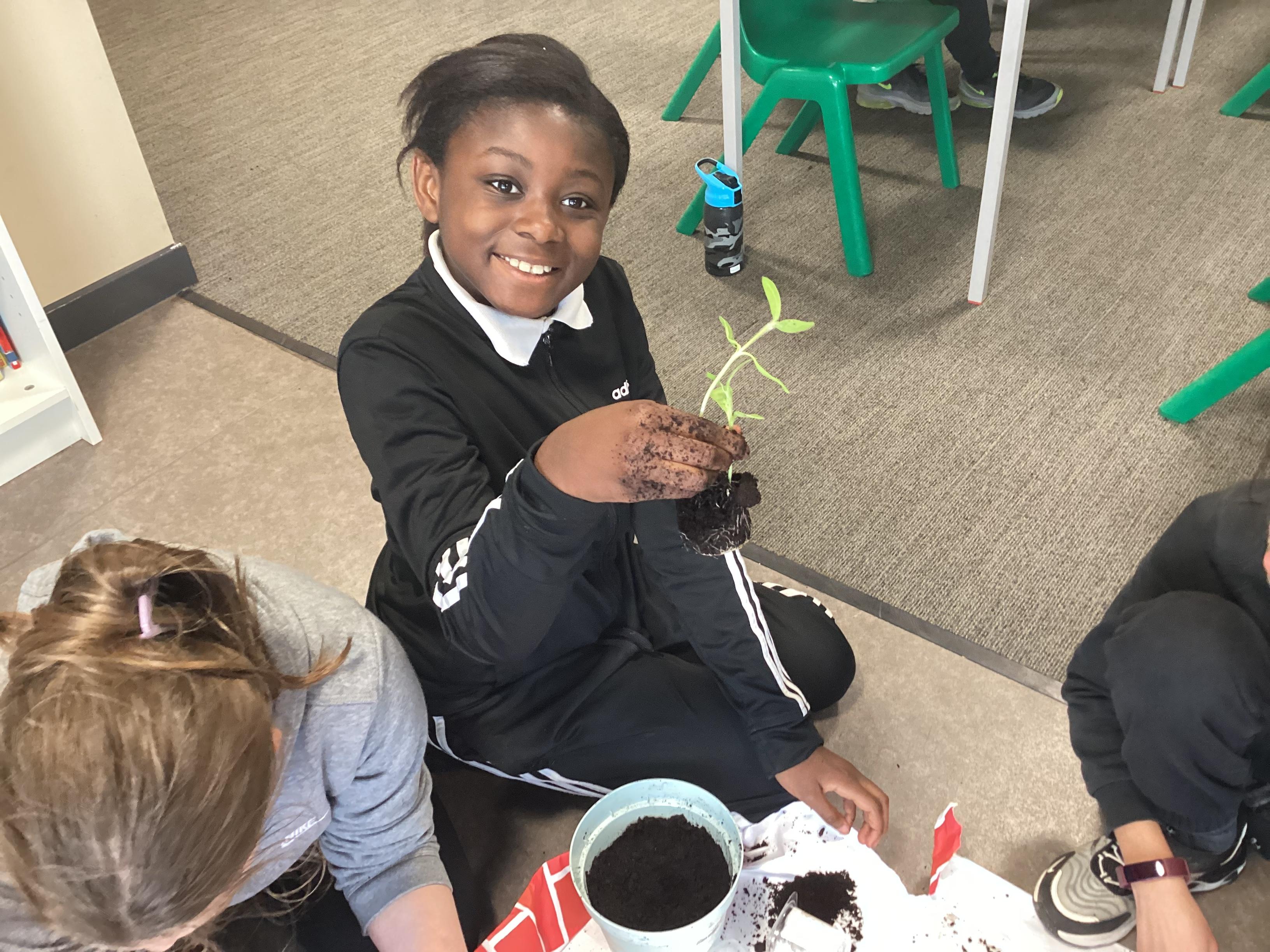 Planting our sunflower seeds