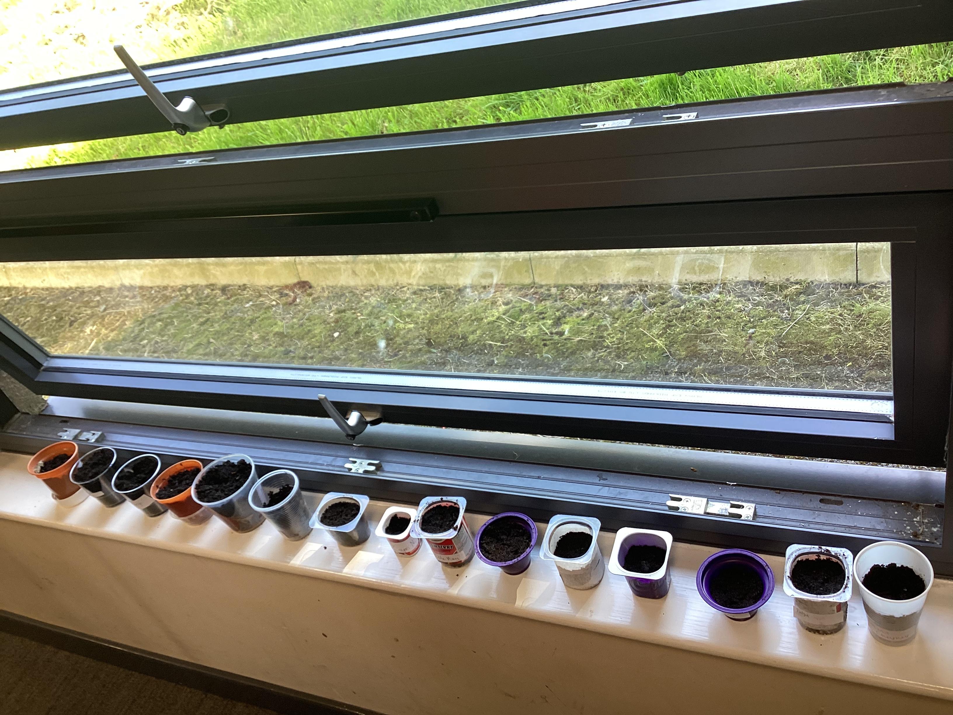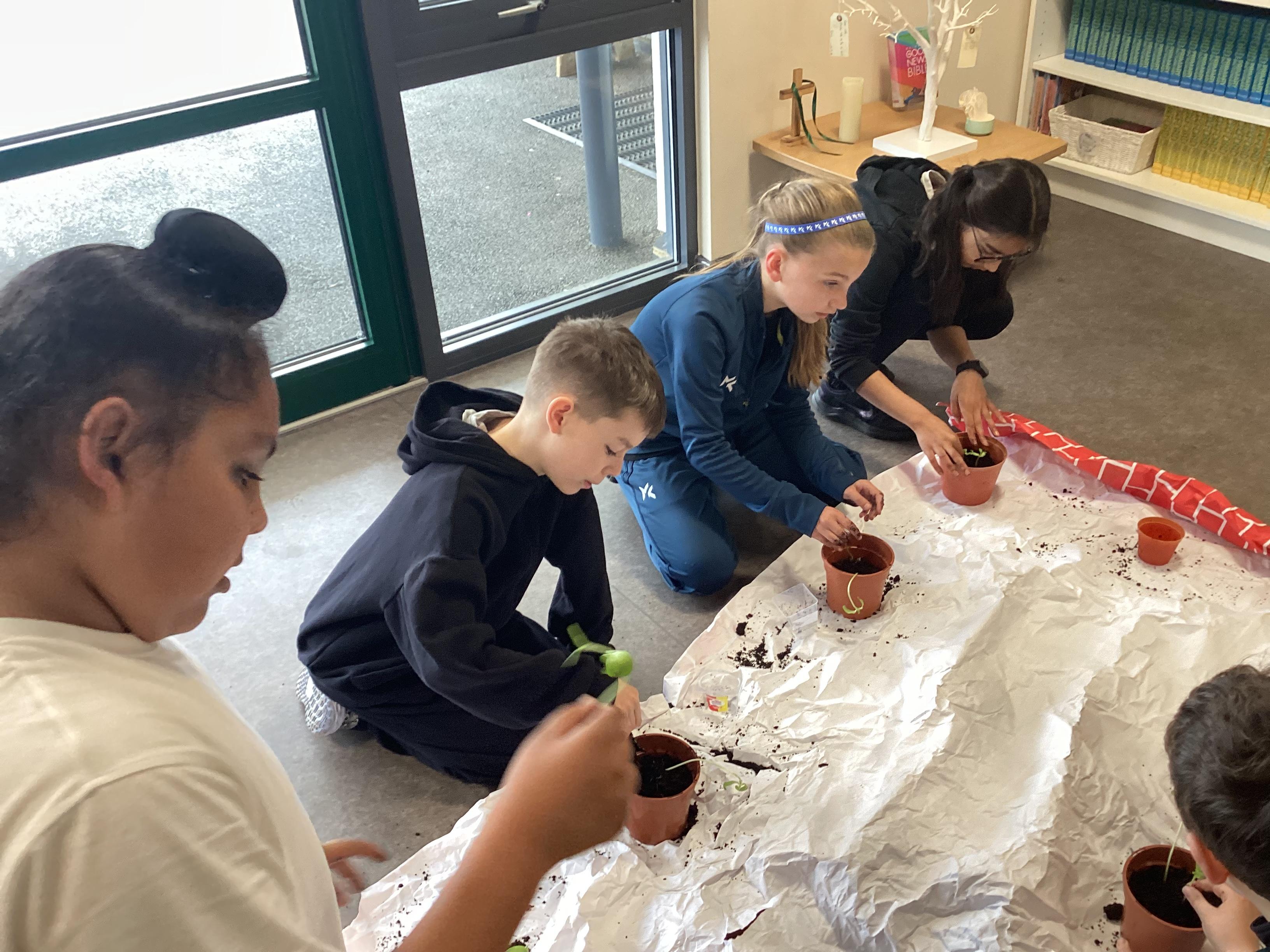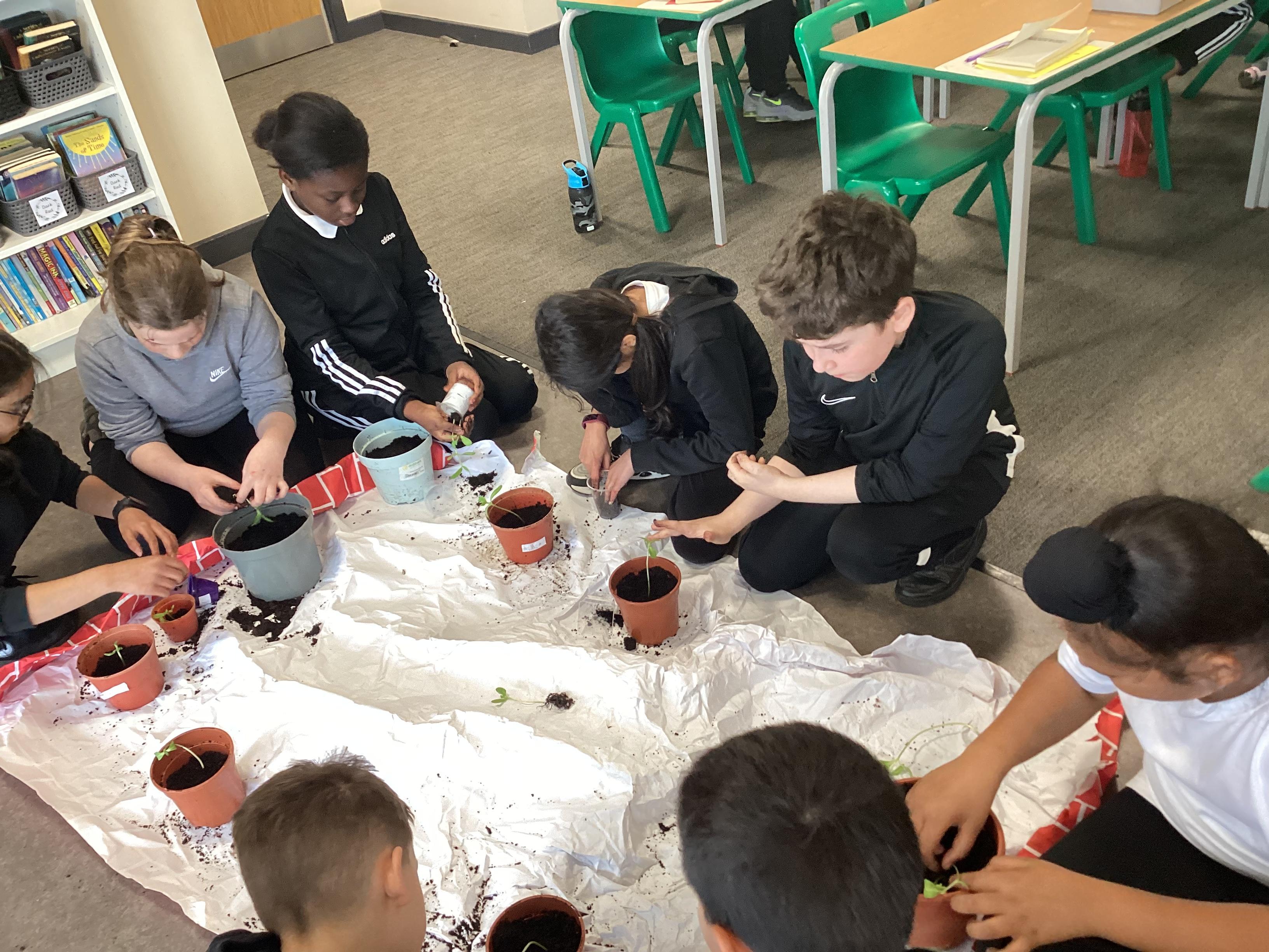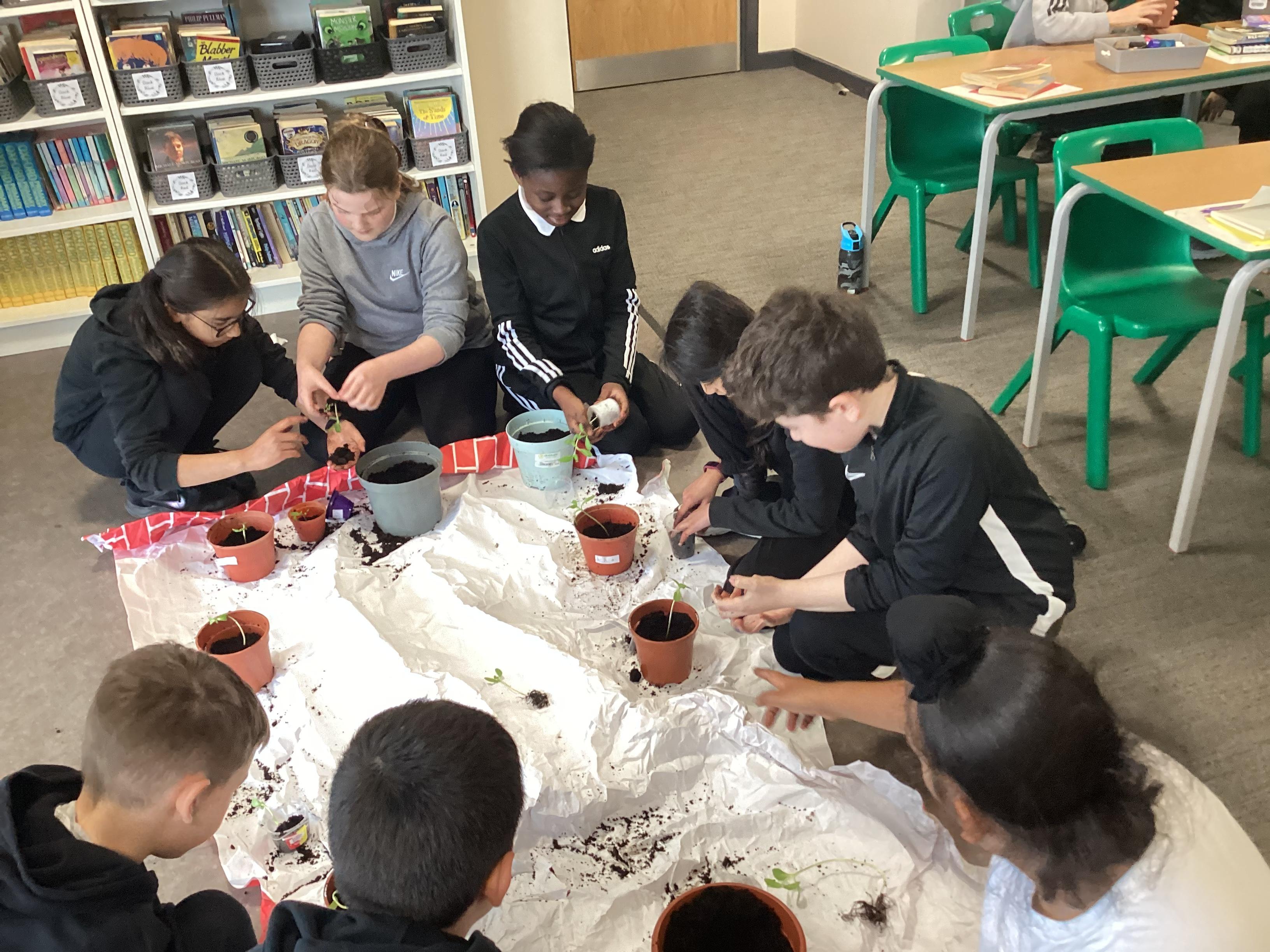 Repotting our sunflowers