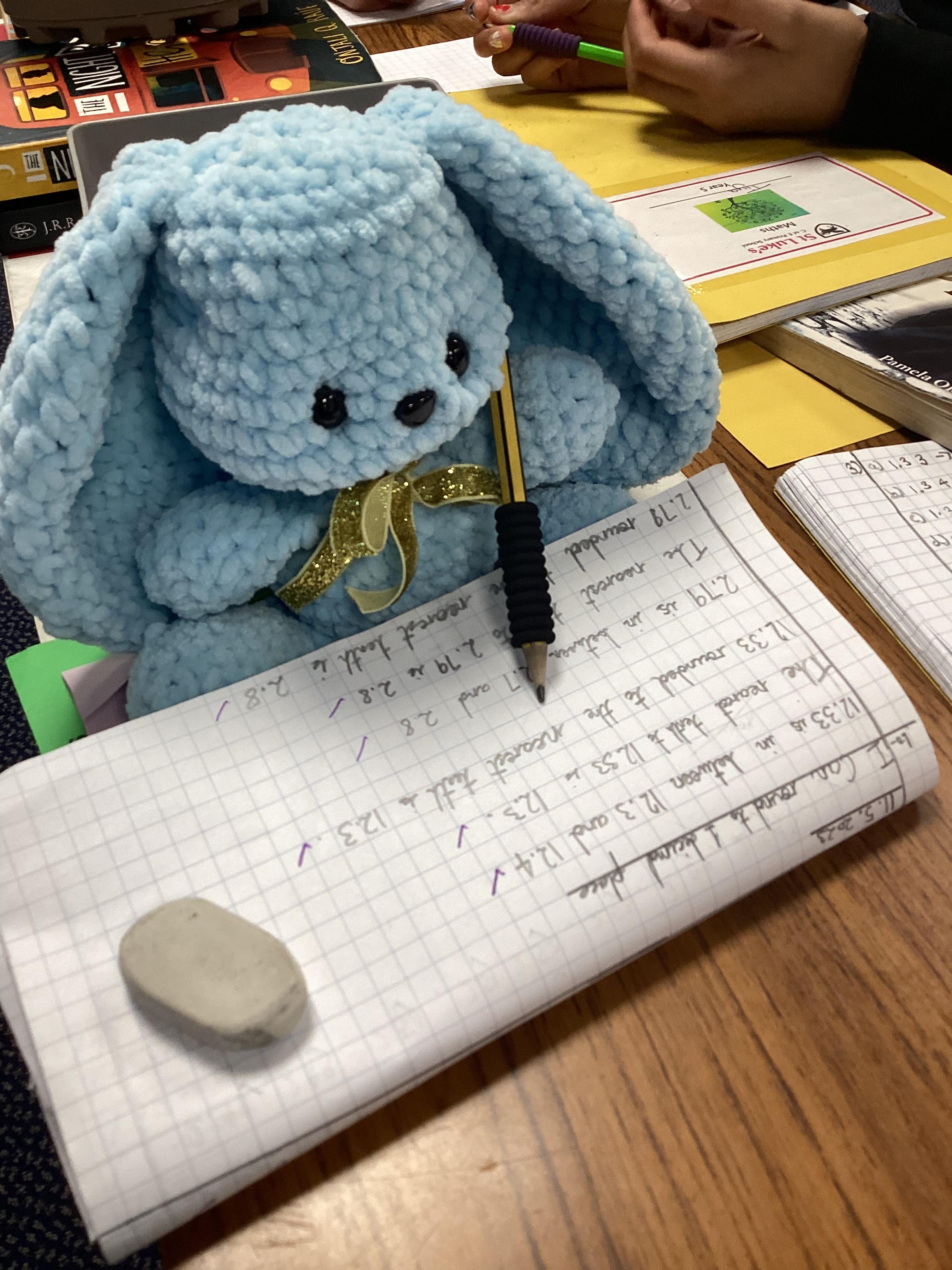 Ella and Skye have been attending the after school crochet club and have made these amazing blue bunnies!