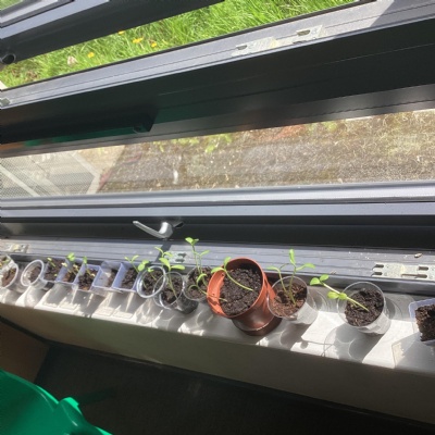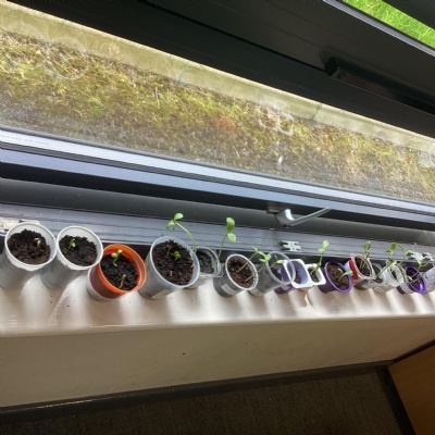 Our sunflowers germinated quickly in the sunny weather.
