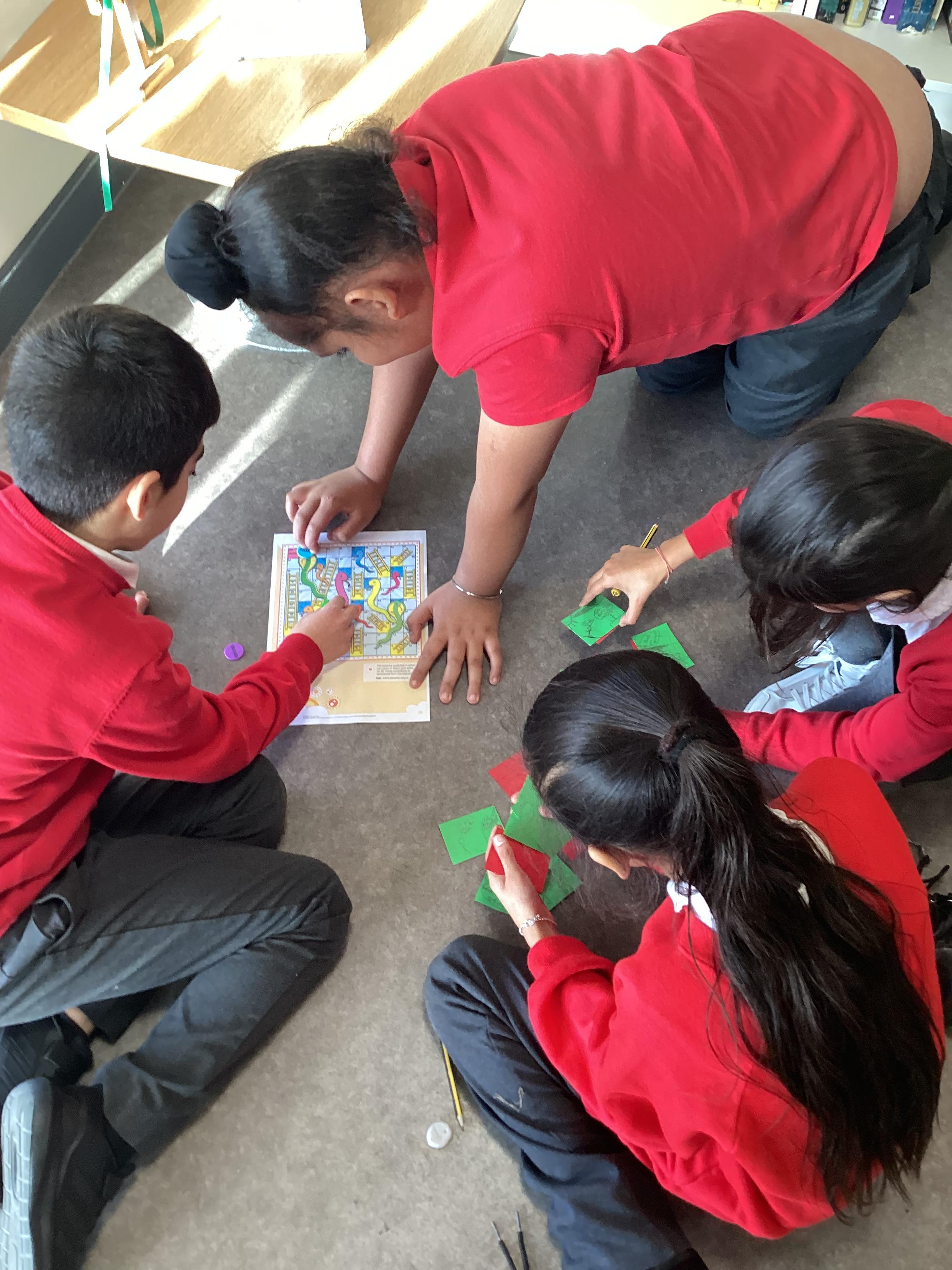 In RE we have been looking at how samsara, karma and dharma fit together. We used the traditional Indian game of Moksha Chitram to investigate Hindu wisdom and the consequences of our actions.