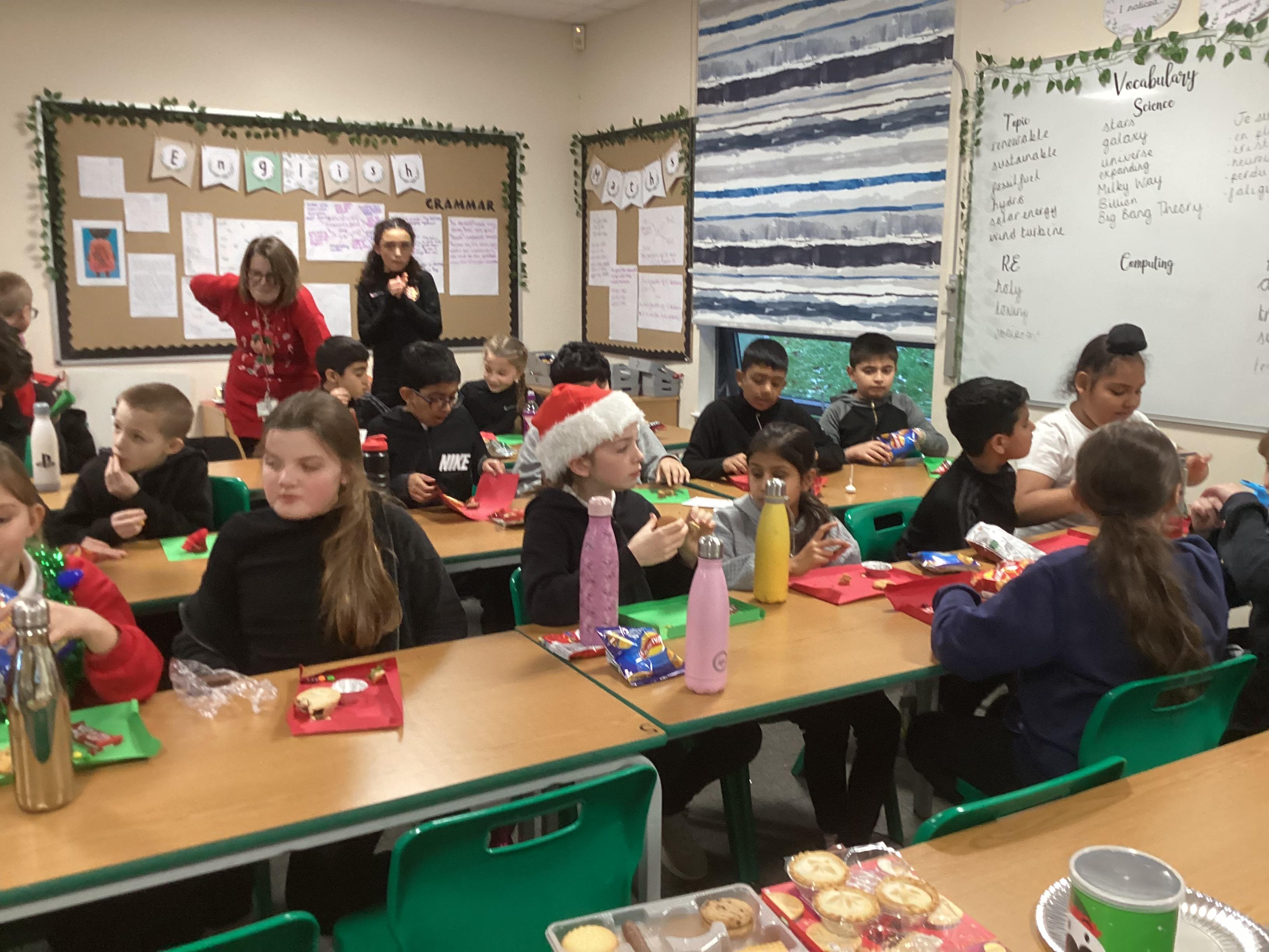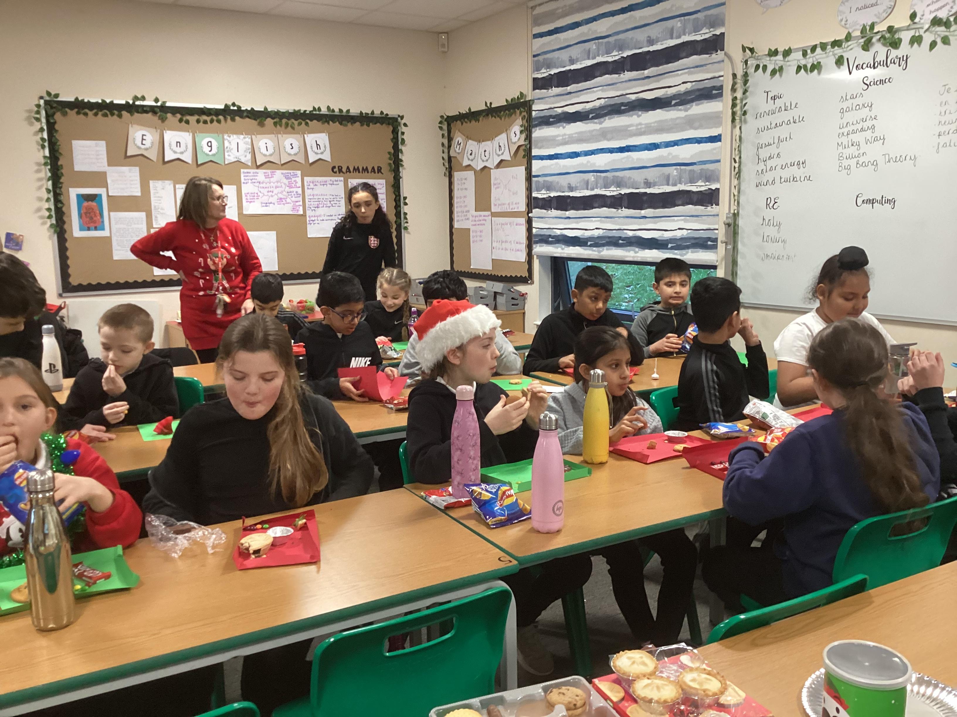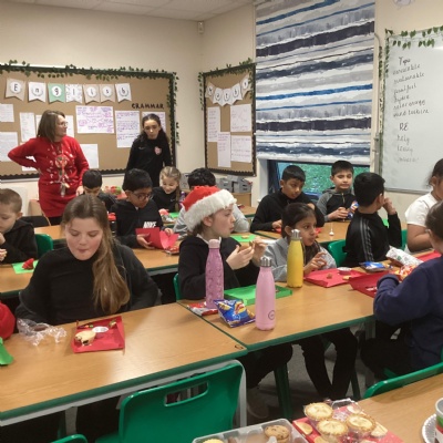 Today Year 5 entertained the local residents of Thurnby as they tucked into mince pies at the Memorial Hall. The class sang the carols beautifully on stage and were treated to drinks and cake after. What a lovely festive morning it was.