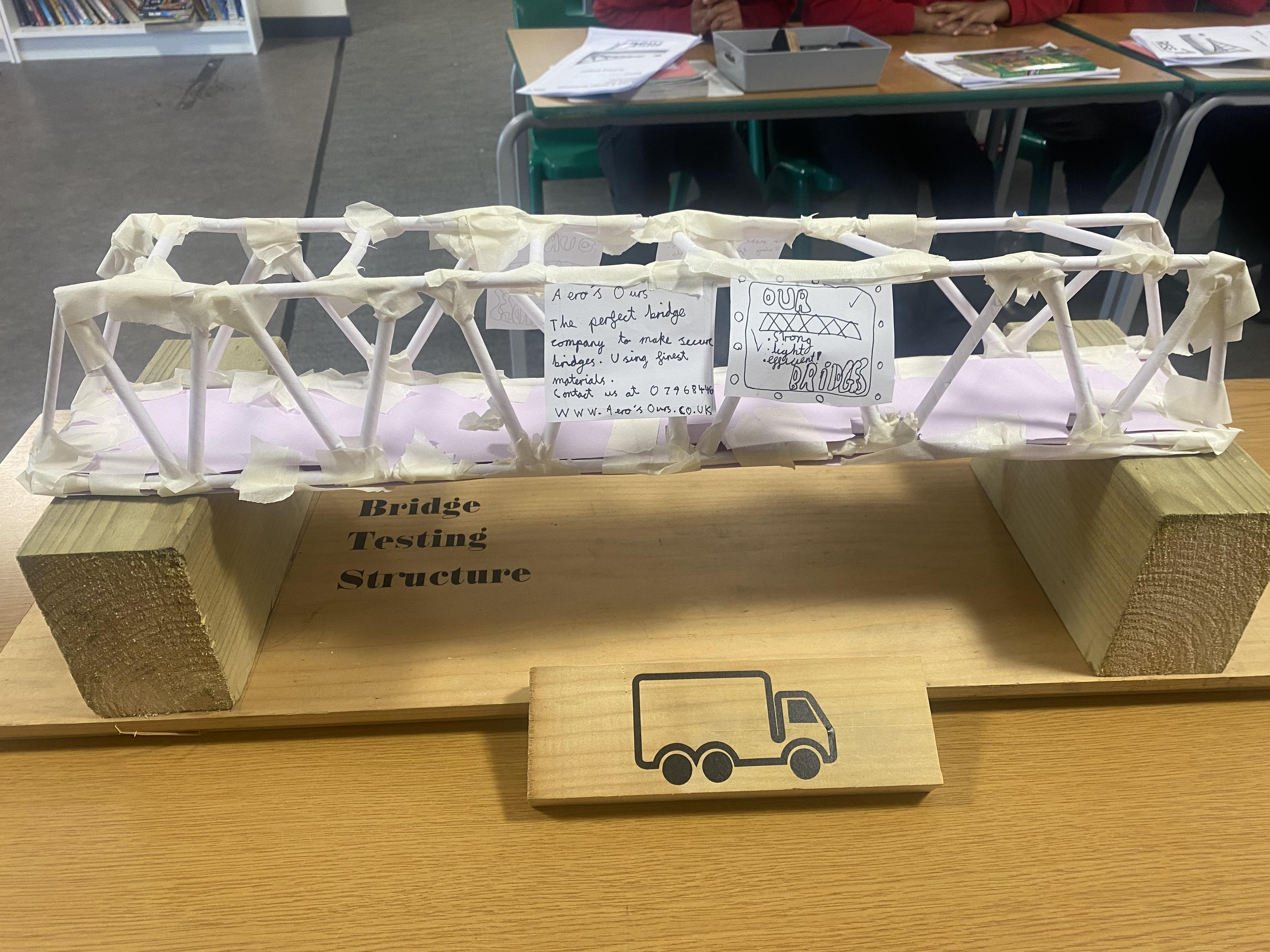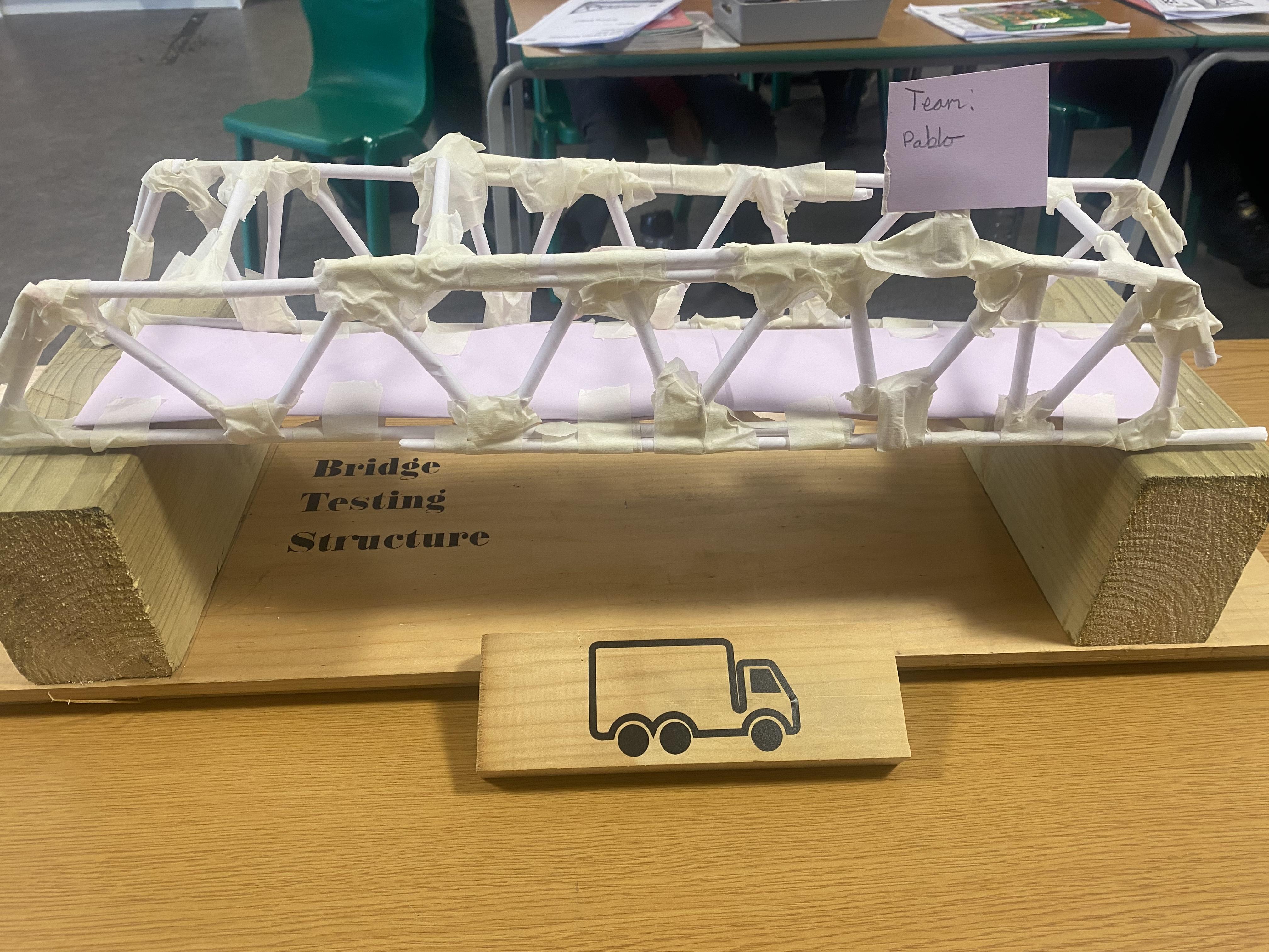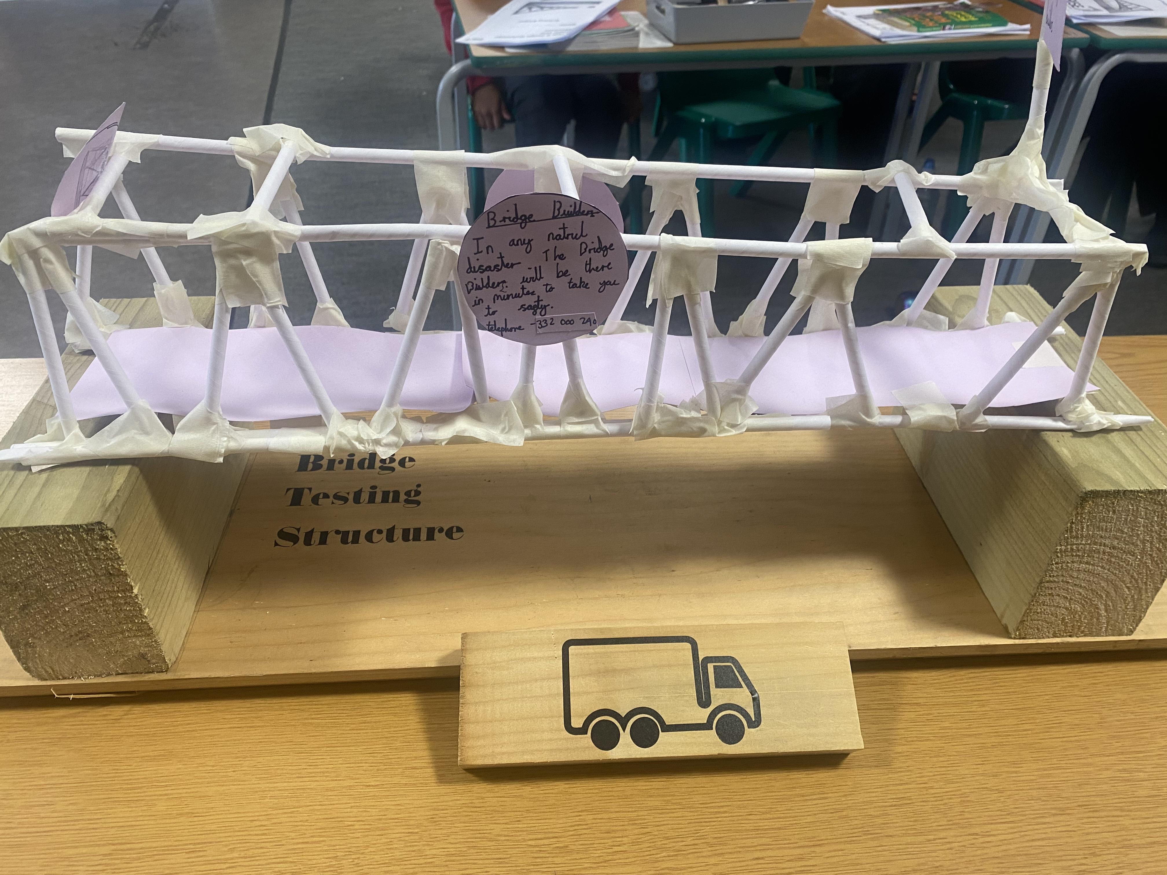 Our bridges were tested on a specially built structure with a 45cm gap. The bridges also had to accommodate the lorry with an additional 500g weight.