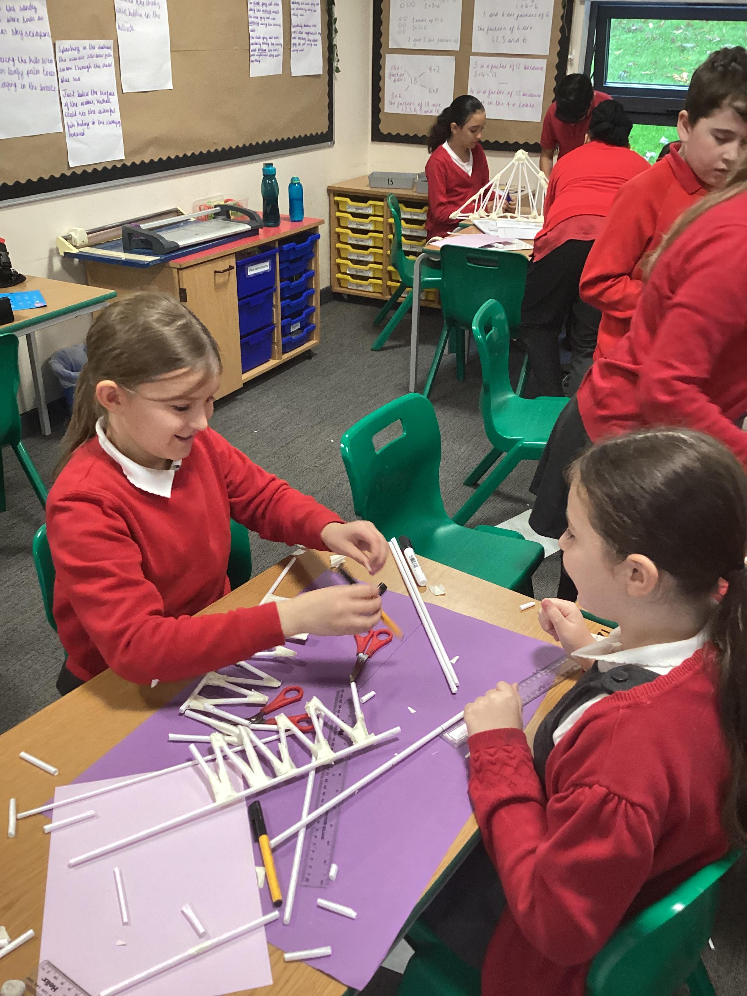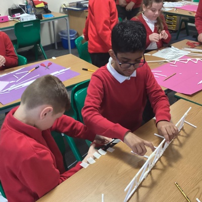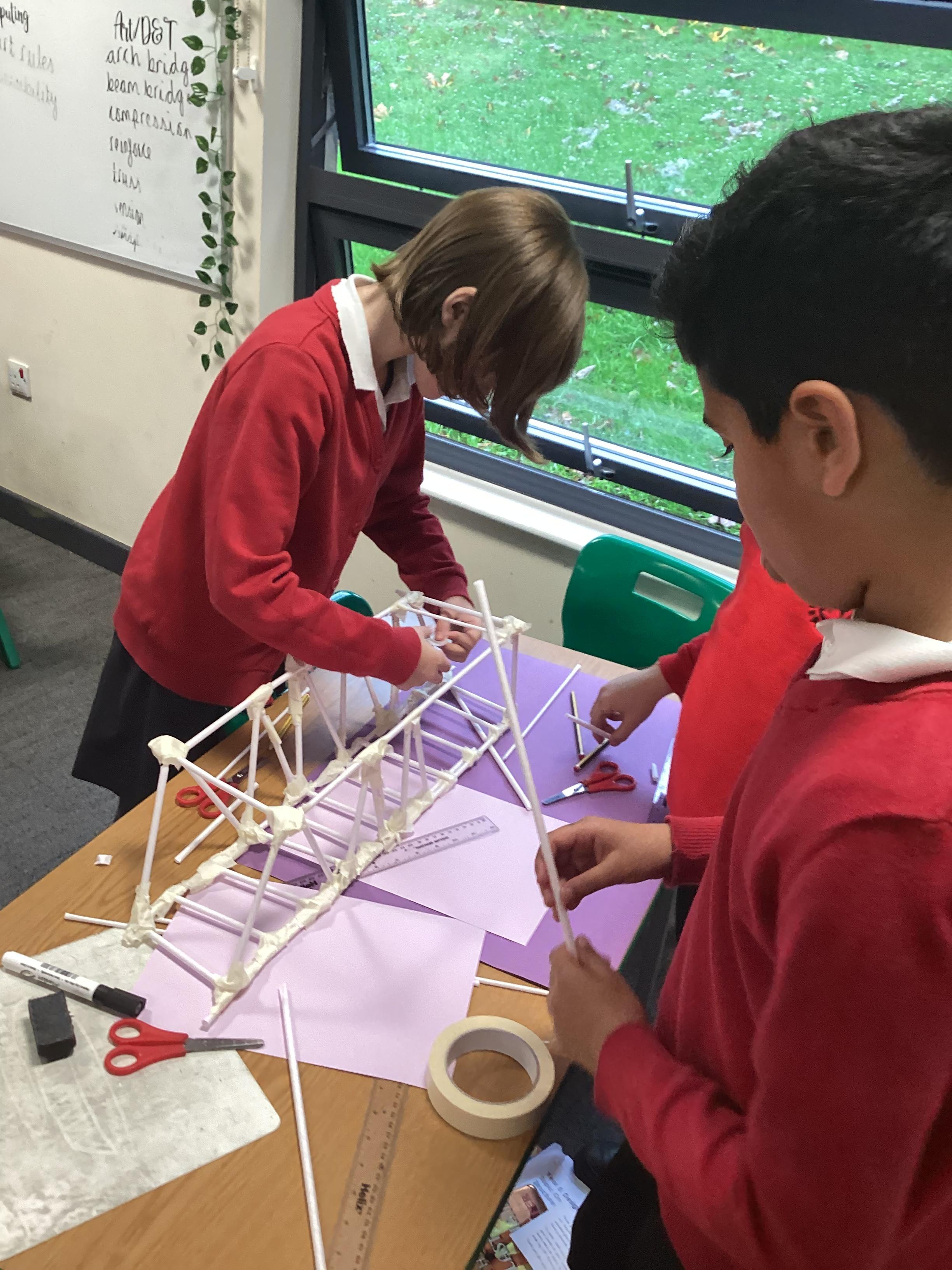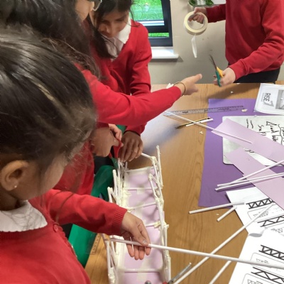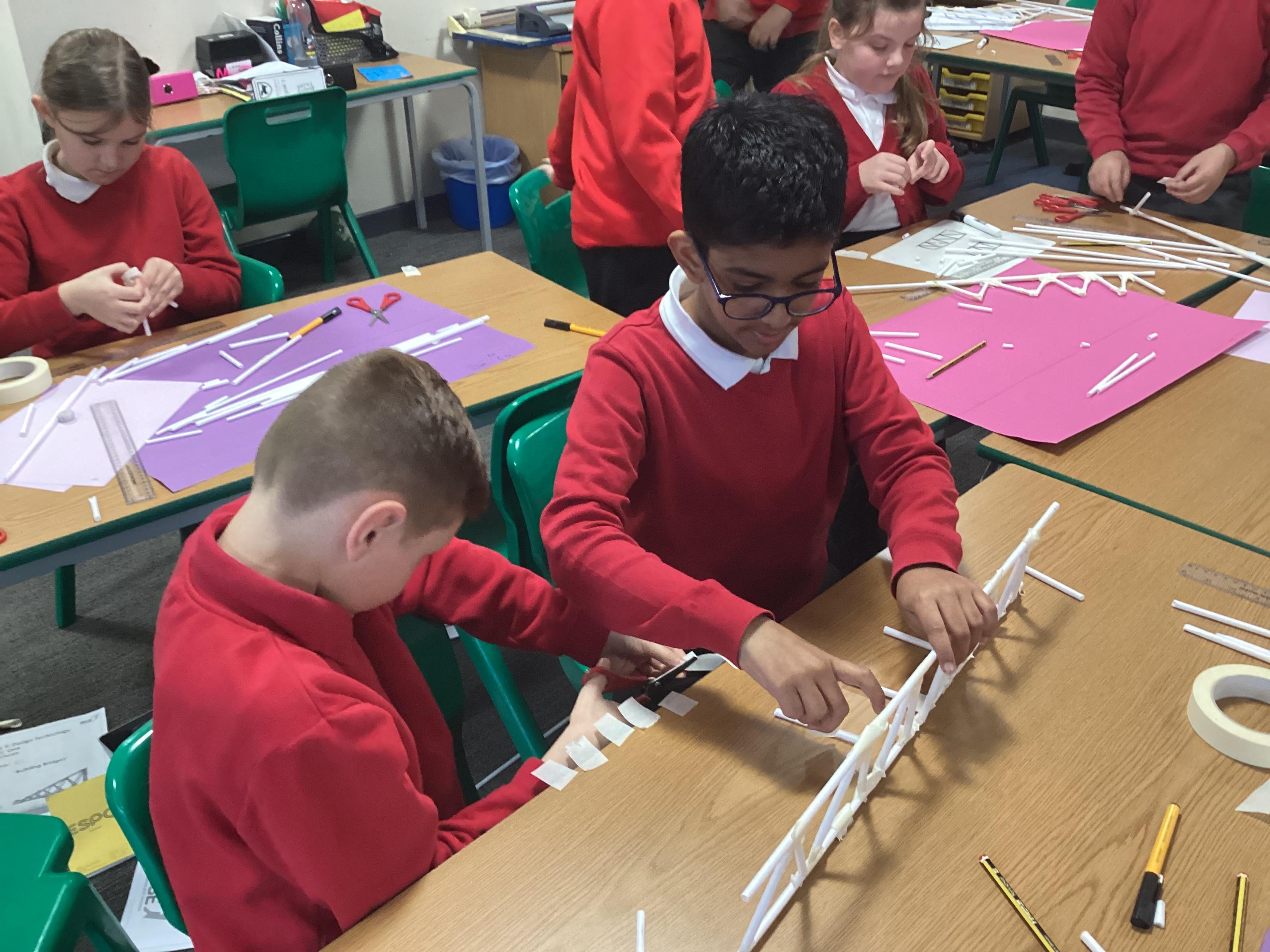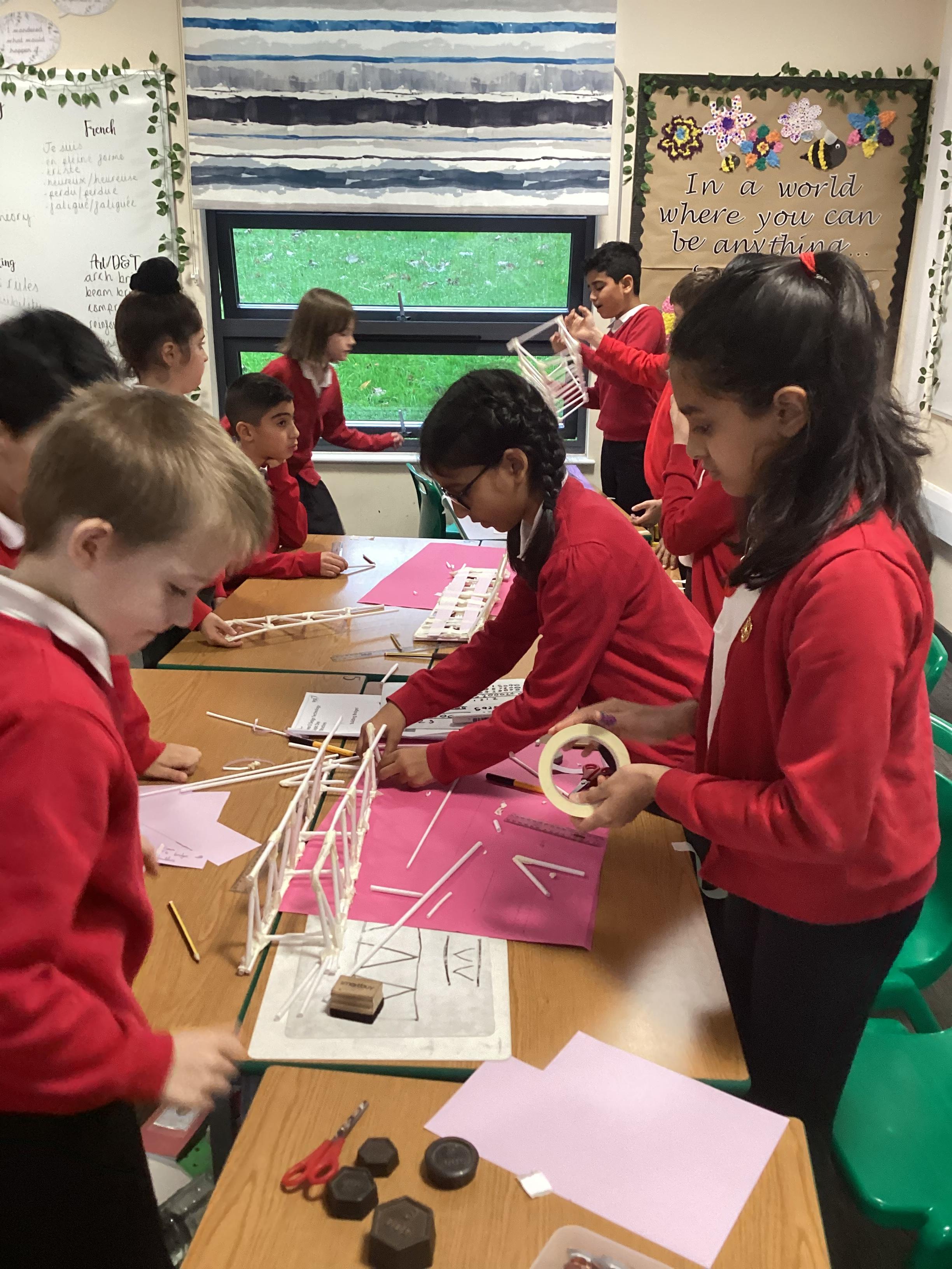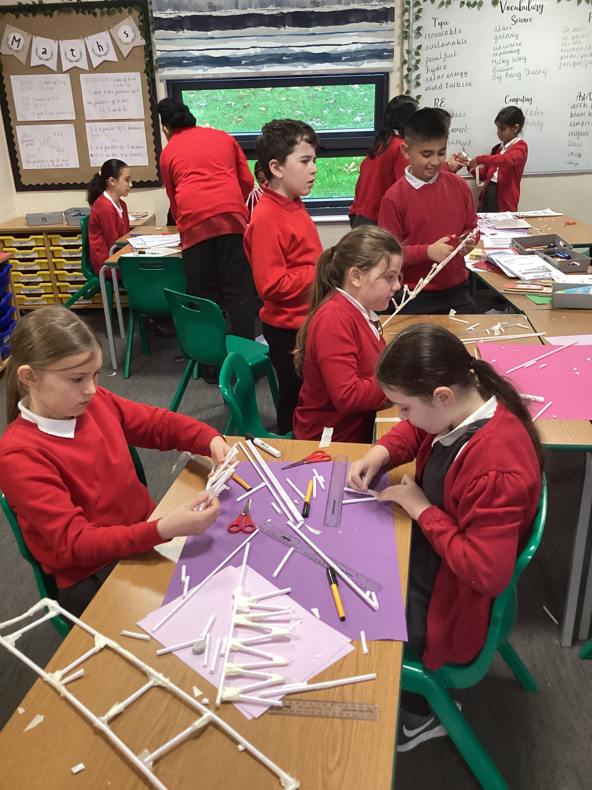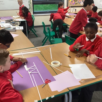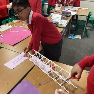 Year 5 have started their Bridge Building unit in DT. They have been making warren trusses using art straws..