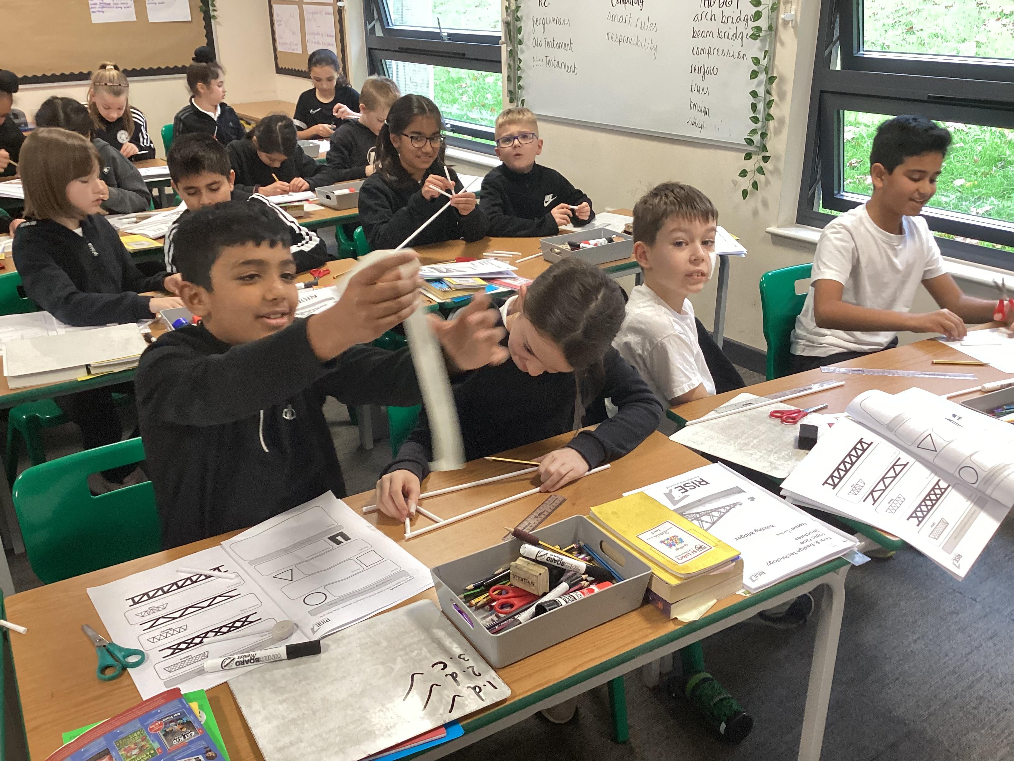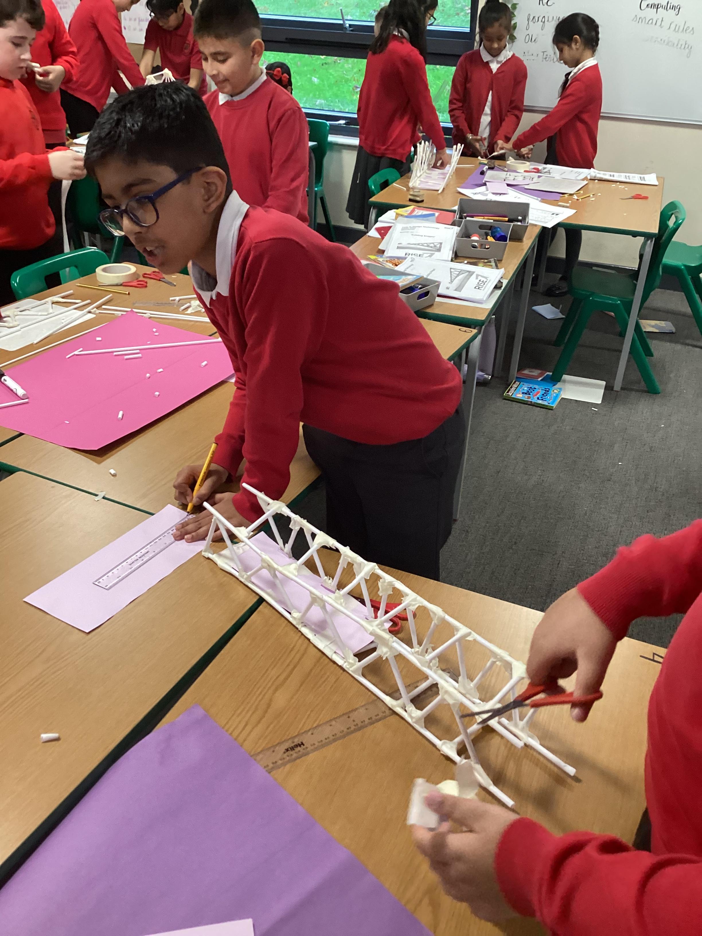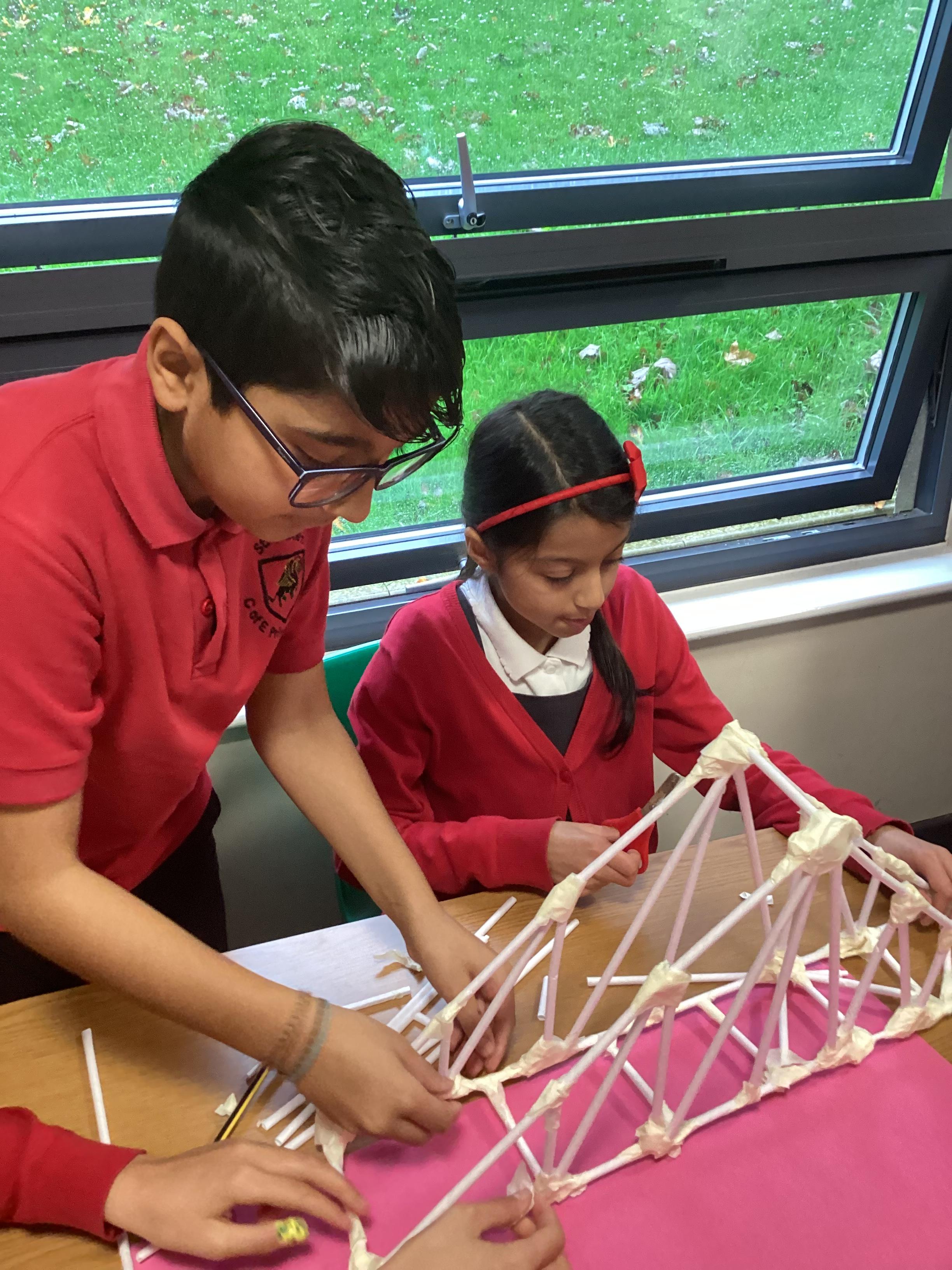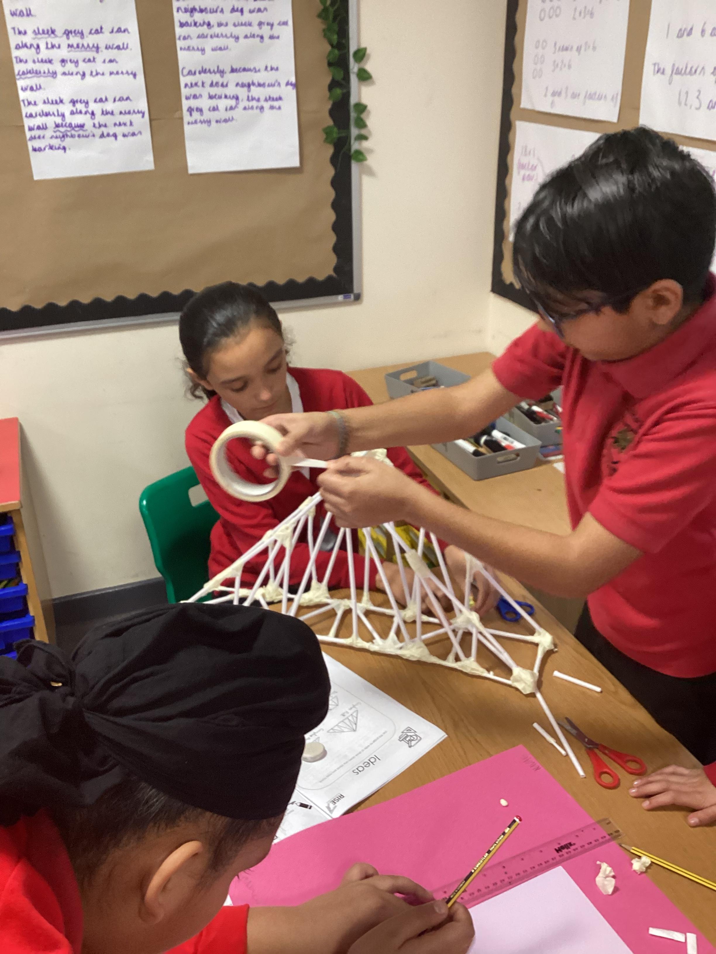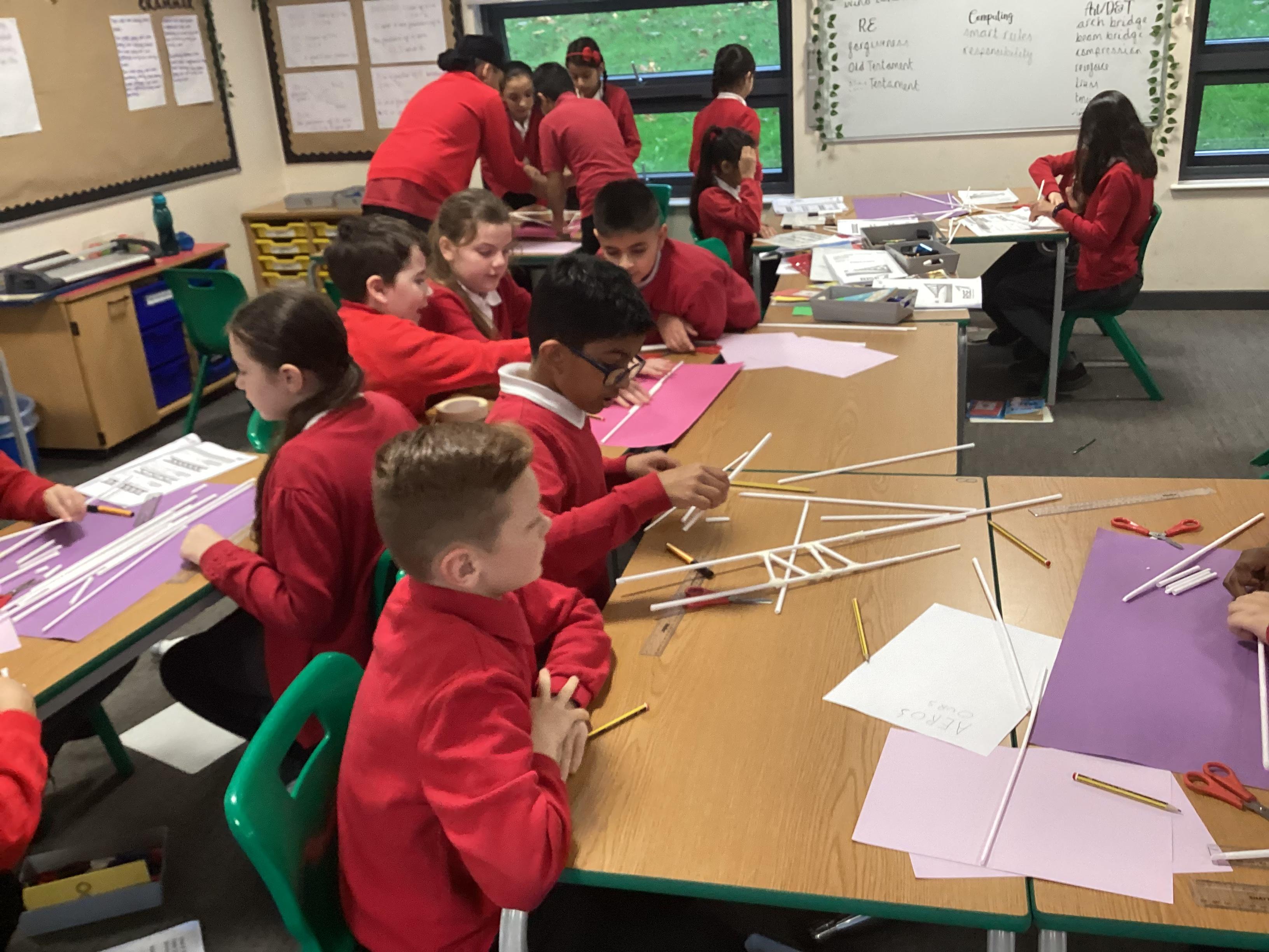 Year 5 have started their Bridge Building unit in DT. They have been making warren trusses using art straws..