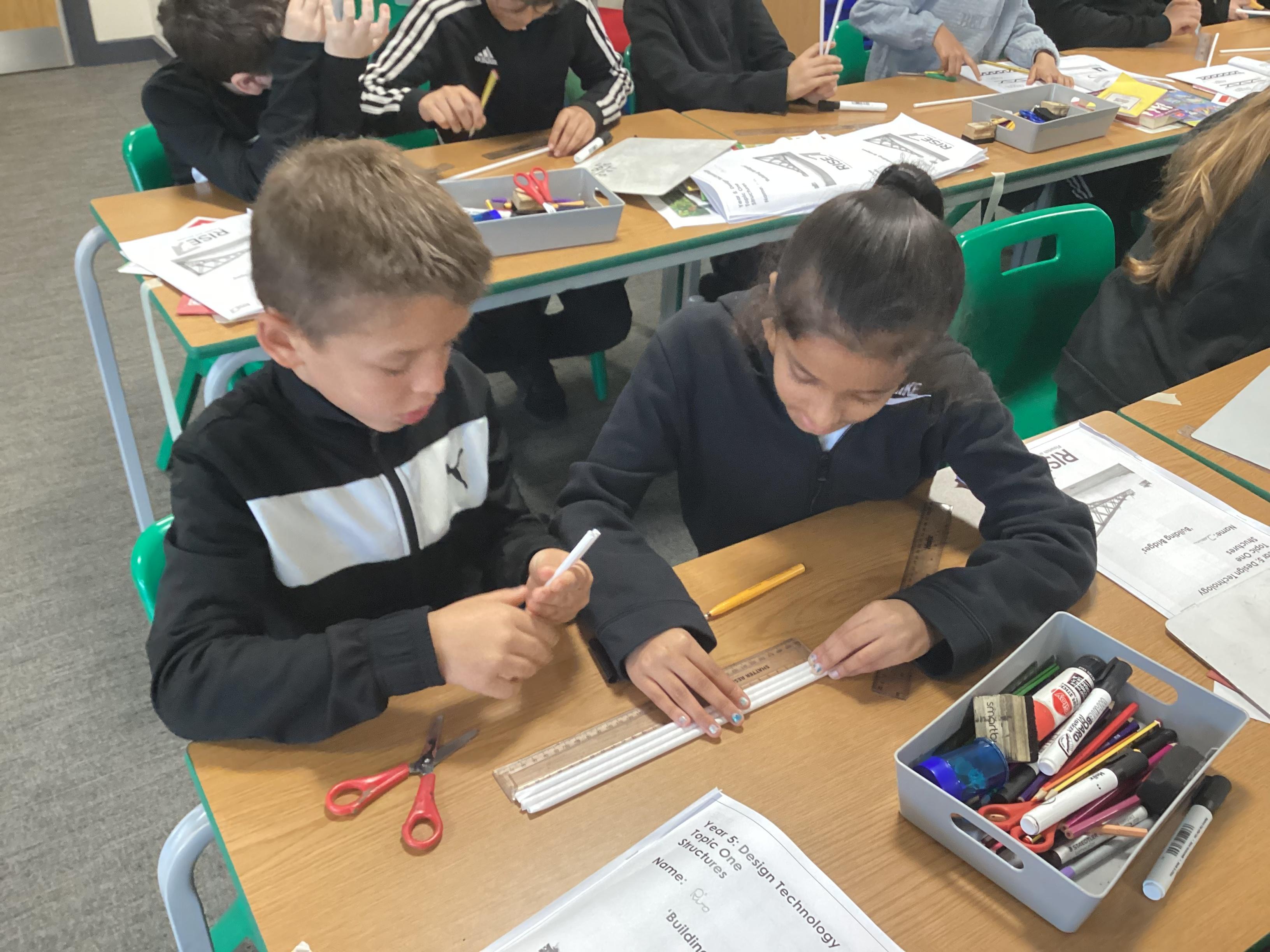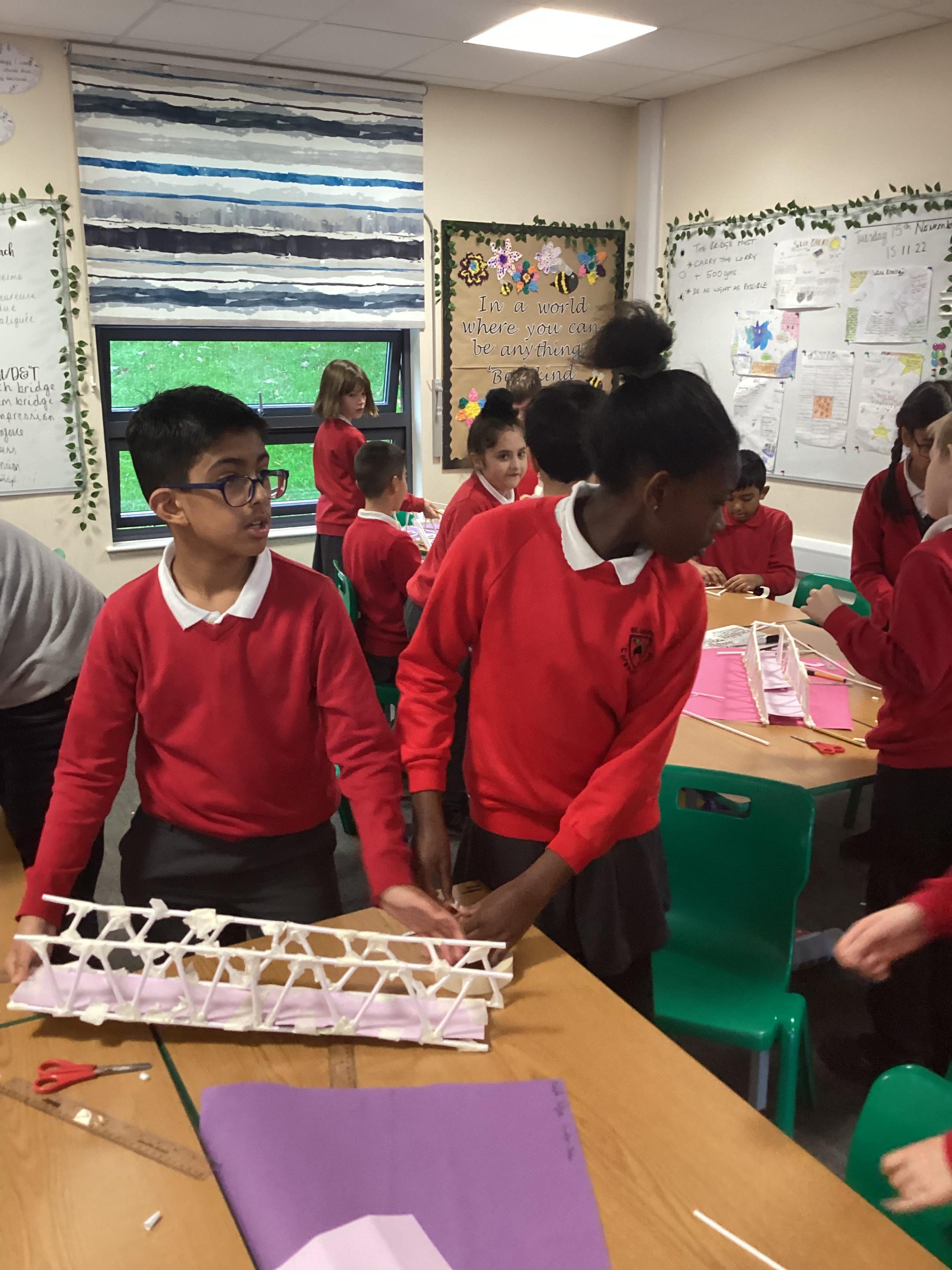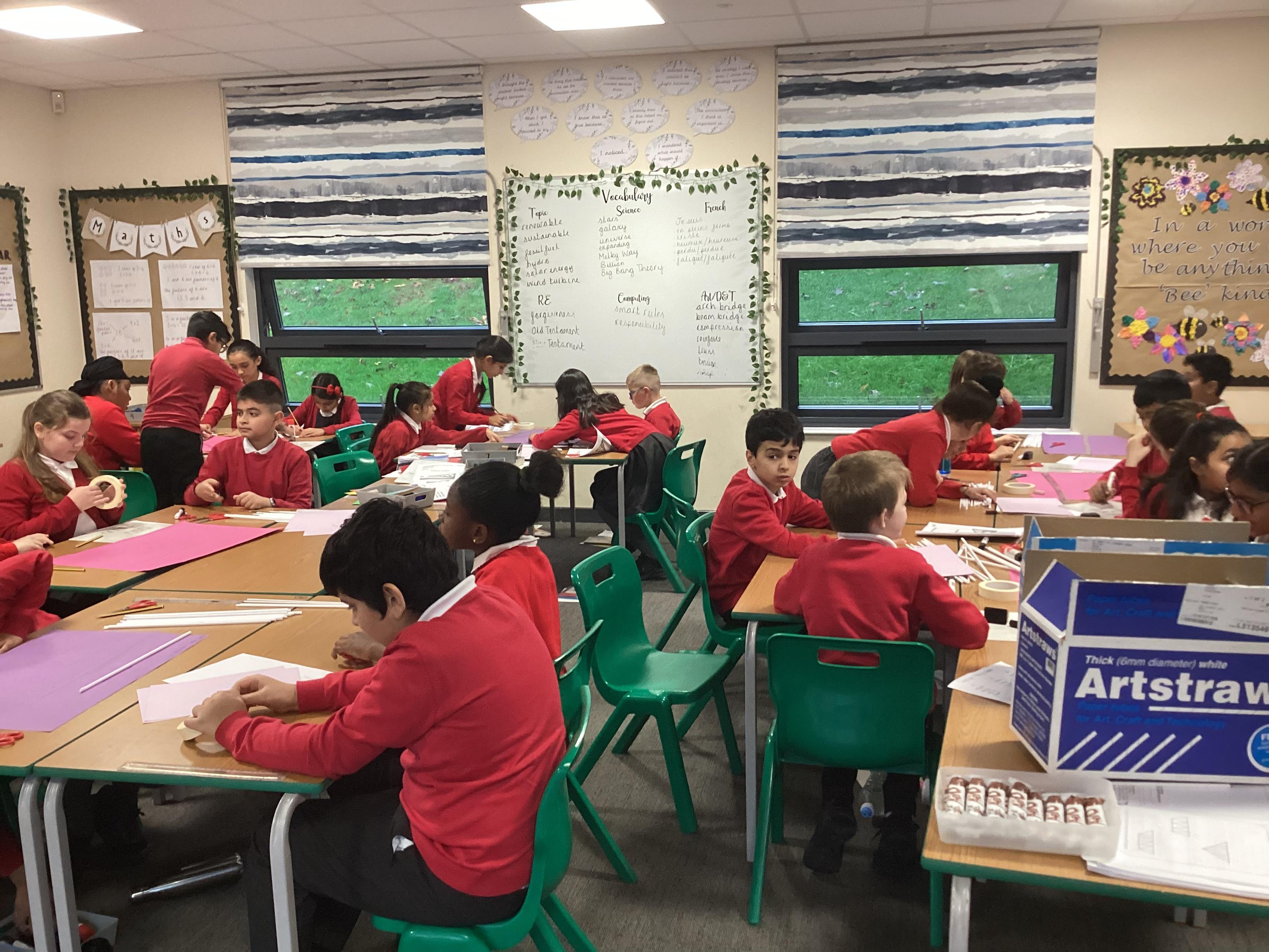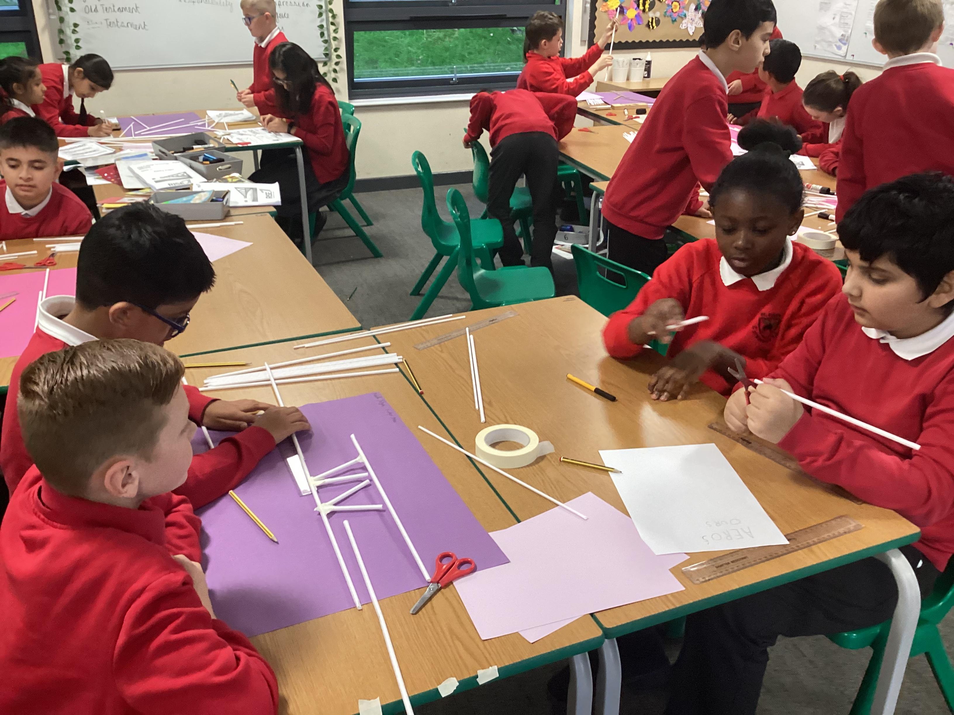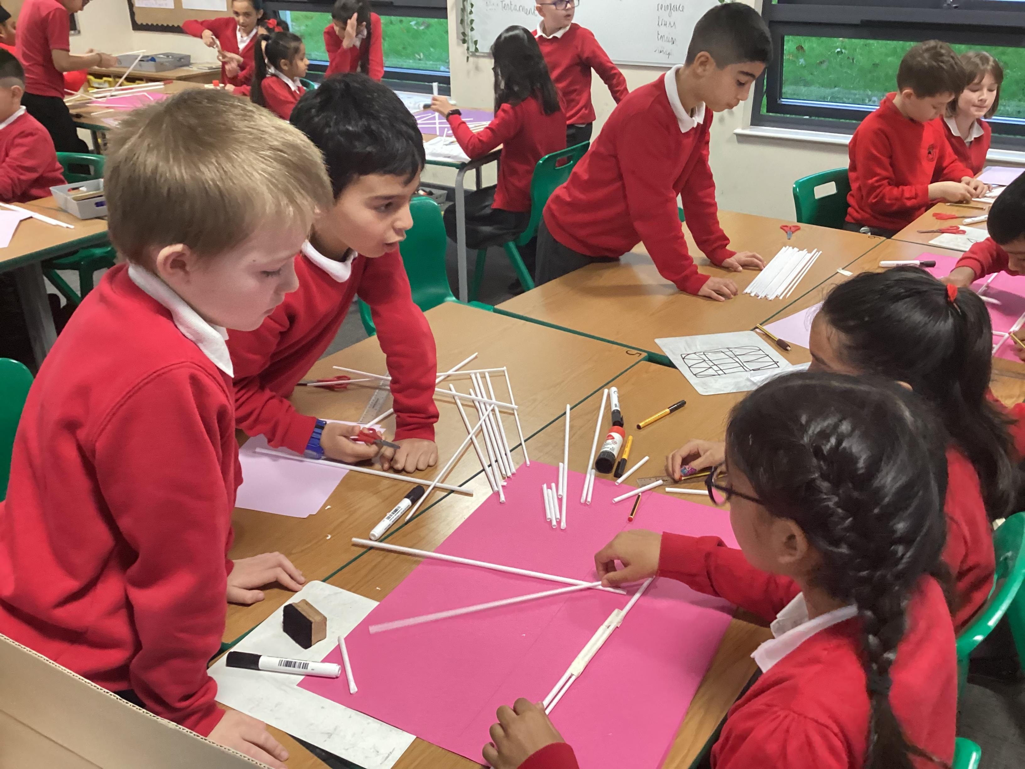 Year 5 have started their Bridge Building unit in DT. They have been making warren trusses using art straws..