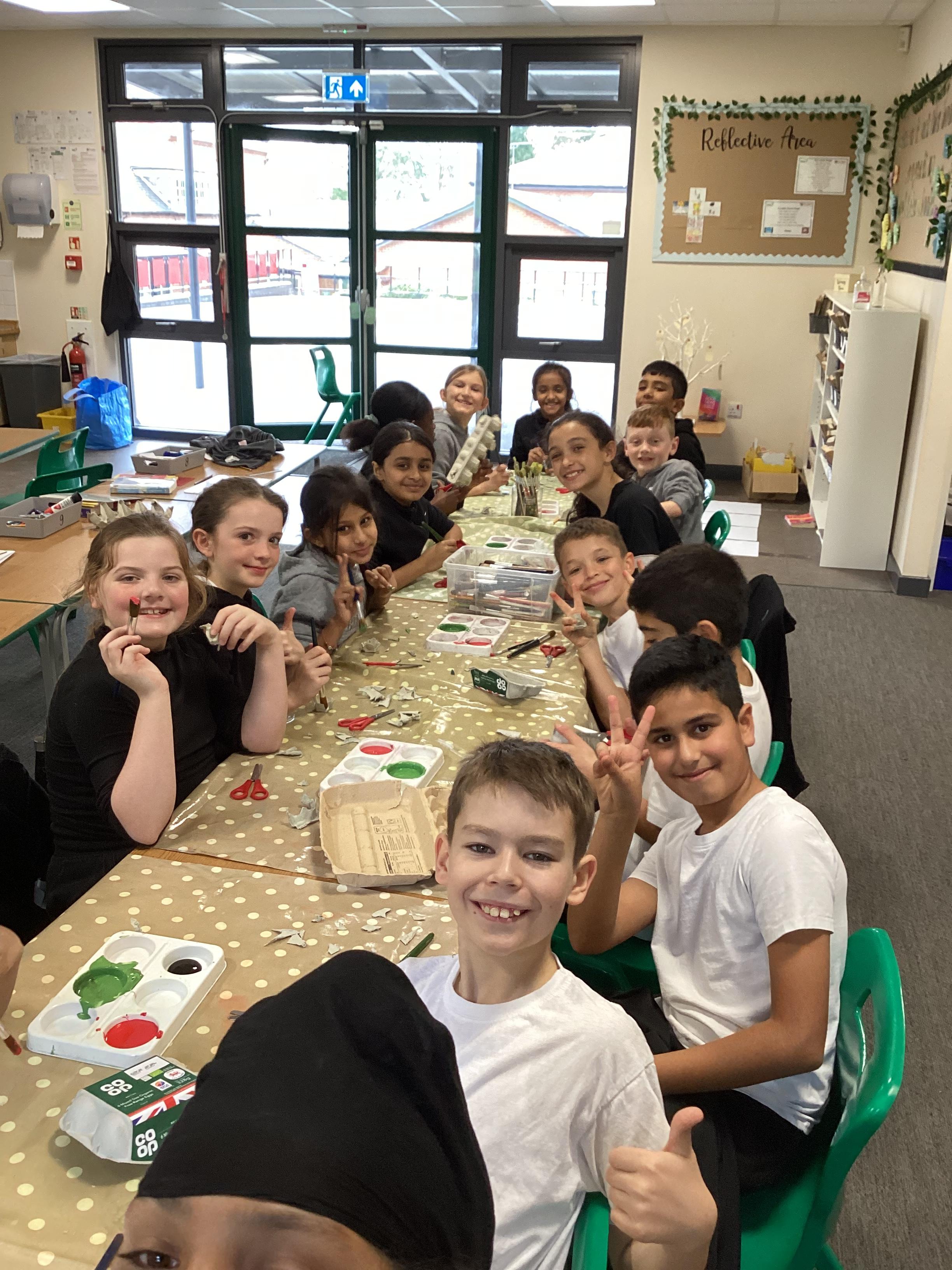 We had a great time making our poppy wreath out of egg boxes.